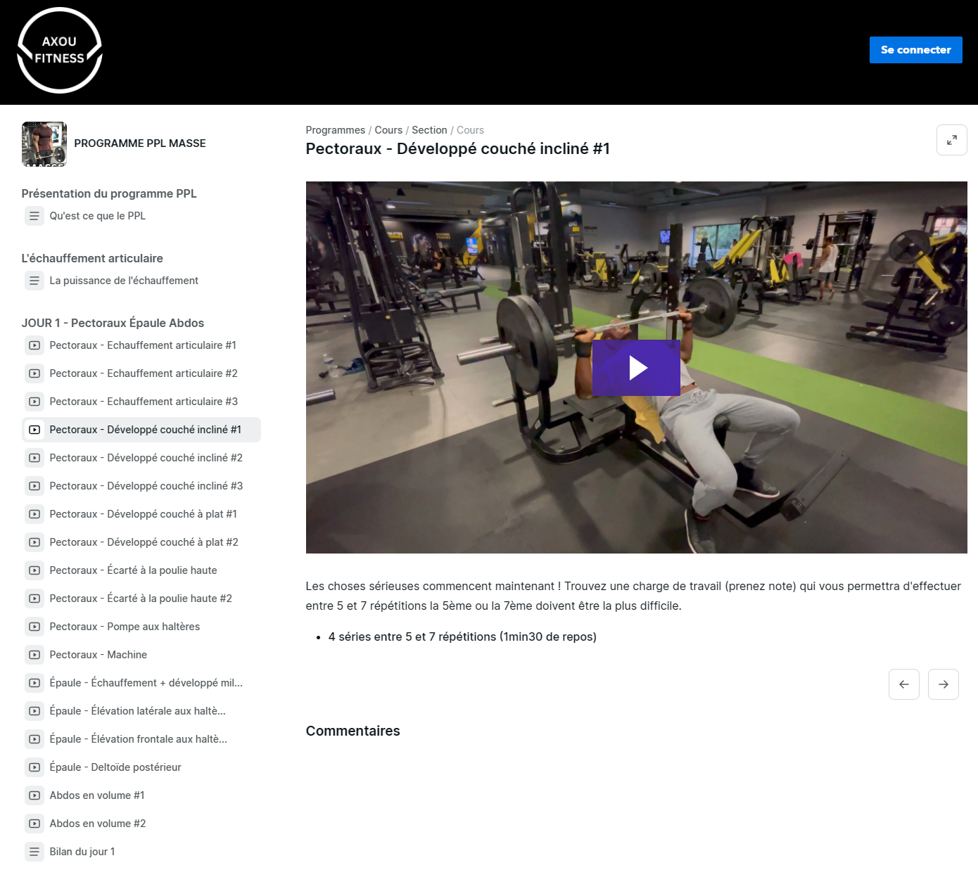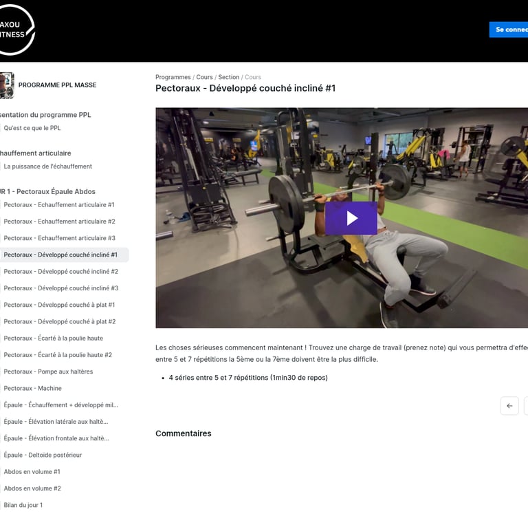 Pendant cinq jours, je suis avec vous en vidéo pour vous imposer le bon rythme, vous corriger dans chaque exercice et vous empêcher de faire n’importe quoi à la salle.
